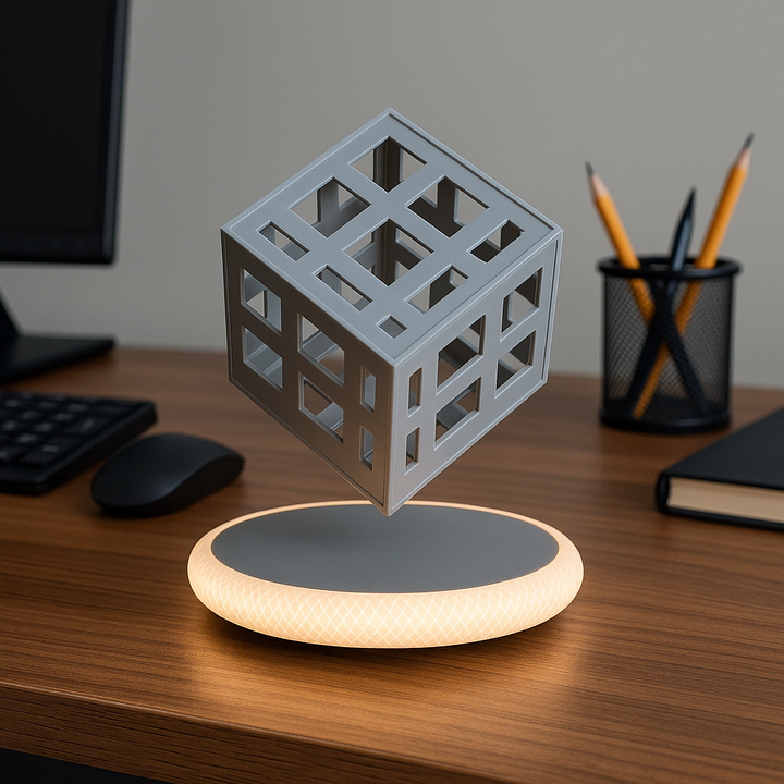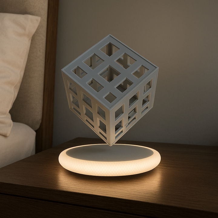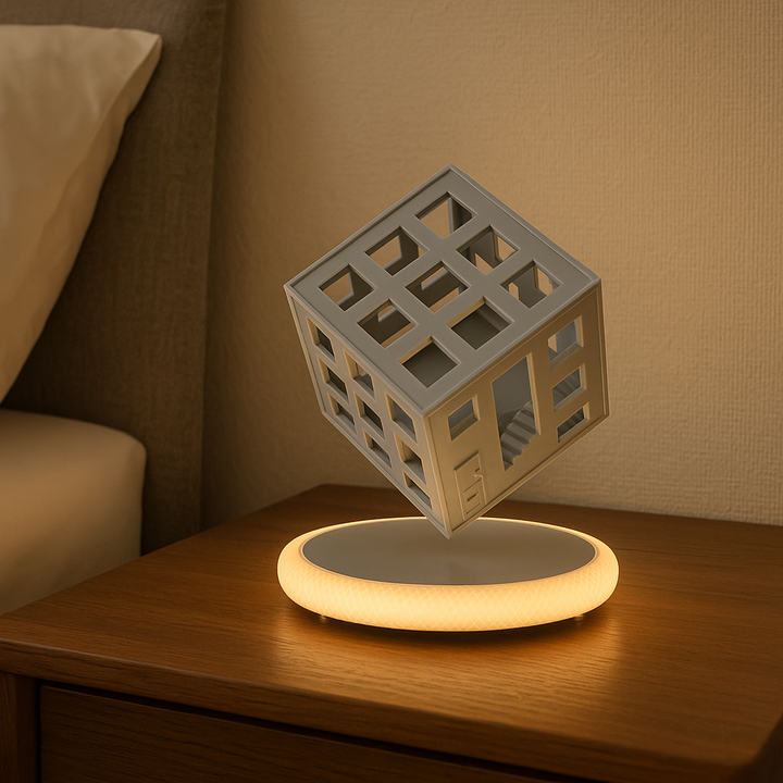 Crafted with 3D printing technology, the cube’s base emits a warm, gentle light that complements the floating design. The soothing illumination makes it ideal as a night light, reading lamp, or desk accessory, setting the perfect calming atmosphere.