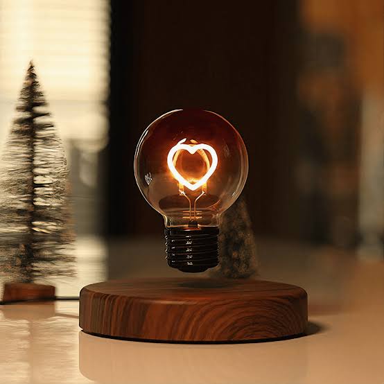 Light up your space with love and innovation using our Magnetic Levitating Light Bulb, featuring a glowing heart-shaped filament suspended mid-air. This captivating desk lamp floats effortlessly above a sleek wooden base using cutting-edge magnetic levitation technology, making it a standout piece of modern romantic decor.